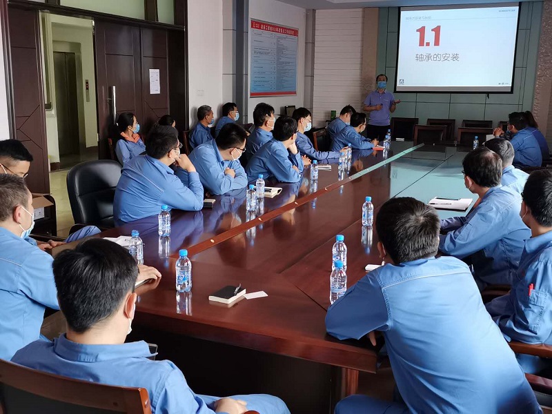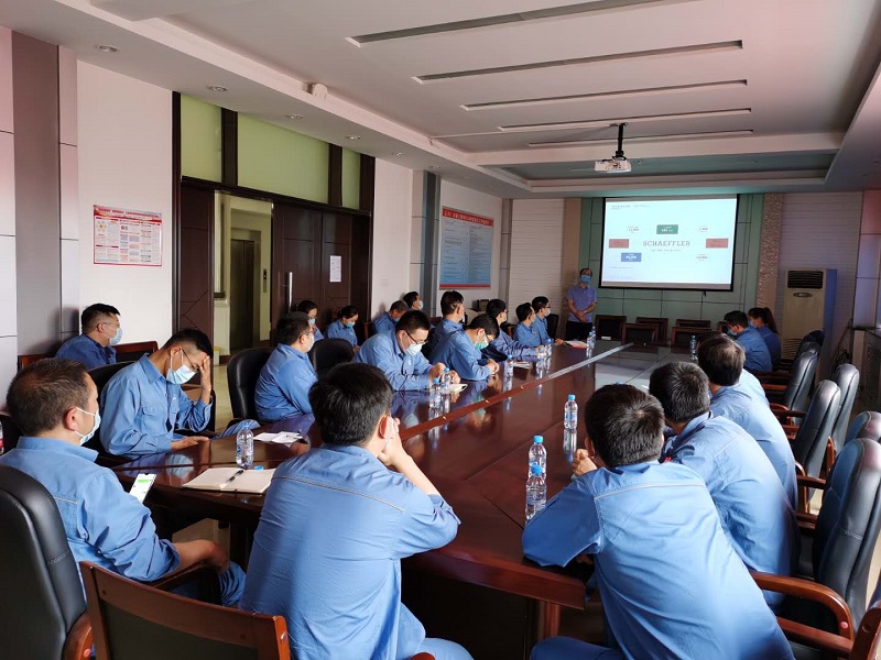 交流會議講師為我司資深技術(shù)工程師殷工,內(nèi)容涵蓋舍弗勒公司介紹、軸承的安裝與拆卸,軸承的潤滑,常見的失效案例的分析等。